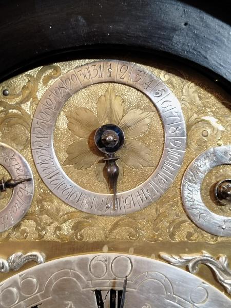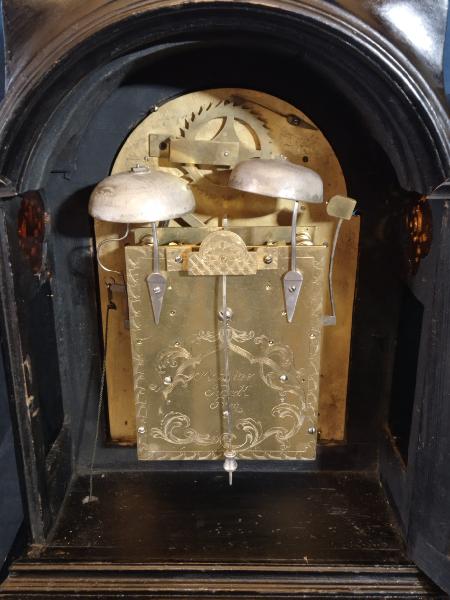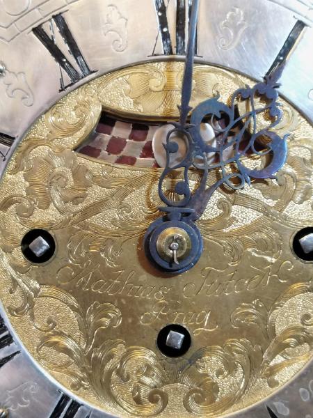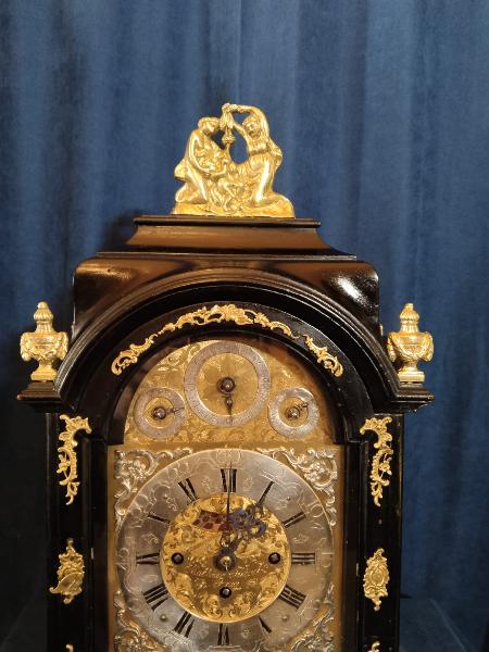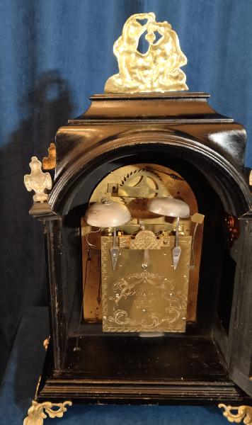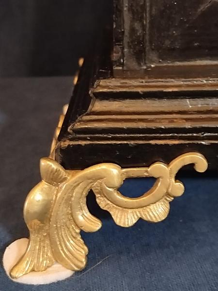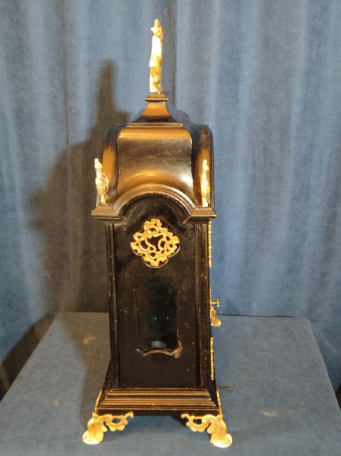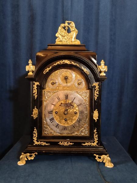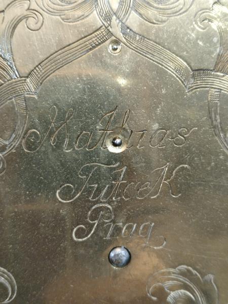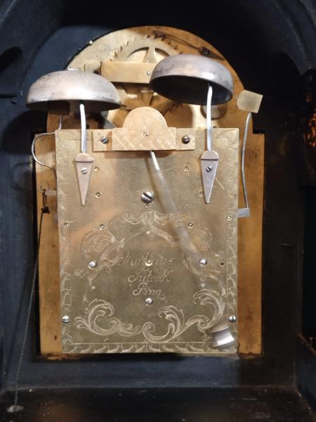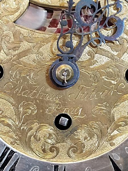 Starožitné, čtvrťové, pražské, barokní, stolní hodiny se špindlovým krokem a ukazatelem datumu.